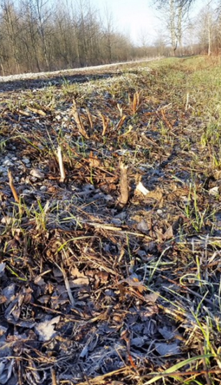There was the successful removal of vegetation and brush (up to 2” thick) from ditches, with varying degrees of slope (0 - 60%), and grub 2-3 inches below the ground surface that was on either side of the road.